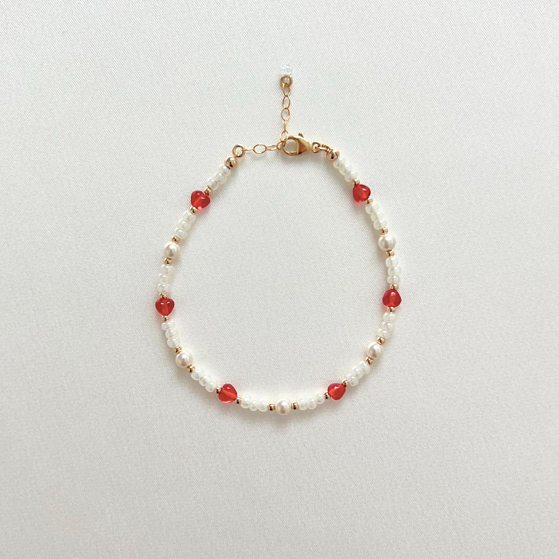 Heart shaped Czech Glass Bead, Czech Glass Seed Bead, Gold Filled Bead or Sterling Silver, Crystal Imitation Pearls (more durable, see material breakdown below)